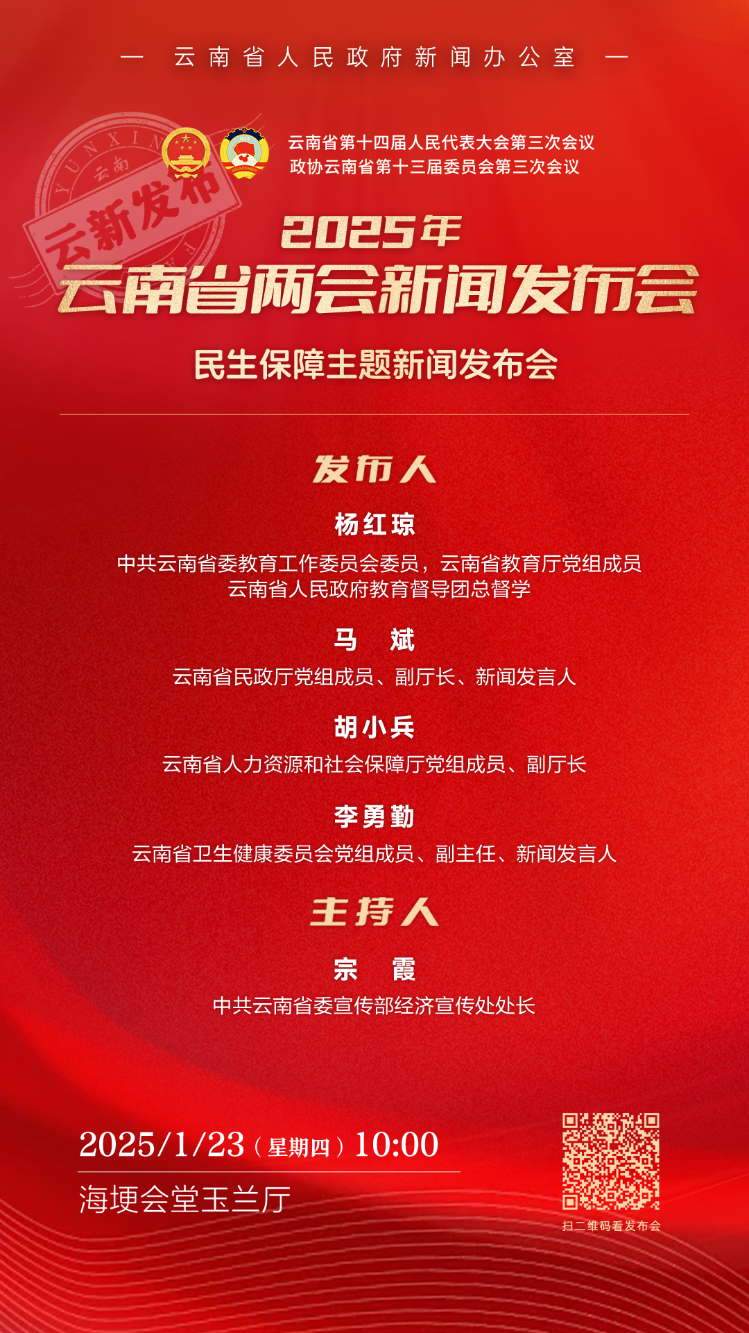 1月23日上午,2025年省两会新闻发布会第四场:民生保障主题新闻发布会在云南海埂会堂召开,介绍一年来云南在民生保障方面的工作情况、取得的成绩及下一步工作,并回答记者提问。
